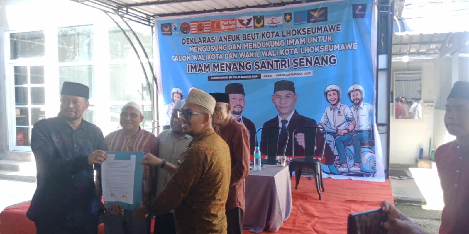 Lhokseumawe – Sipnews.id deklarasi aneuk beut kota lhokseumawe untuk memenangkan (IMAM) ismail – azhar mahmut sebagai walikota dan wakil walikota Lhokseumawe berlangsung di sebuah Caffe dilhokseumawe, 13/8/2024