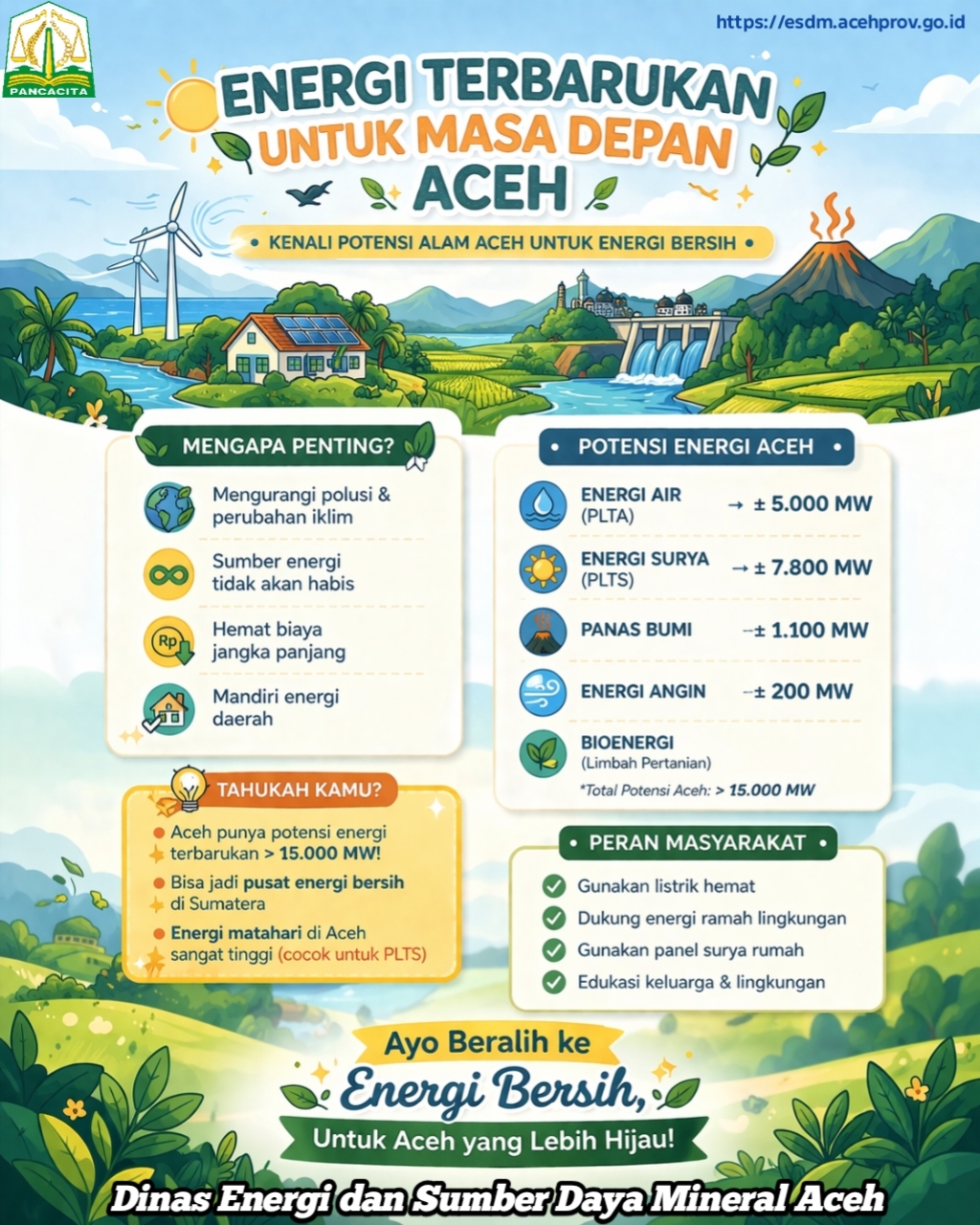 ENERGI TERBARUKAN UNTUK MASA DEPAN ACEH SIP NEWS13 April 2026 - 12:4120 April 2026 - 11:474 views Pos terkaitKampanye Gemarikan, Kak Na Borong Jajanan Sehat di Market Day MIN ModelLaunching Kebun Plasma, Muda Seudang Apresiasi Kinerja DPRK SubulussalamDWP Aceh Salurkan Bantuan bagi Keluarga ASN Terdampak BencanaBupati Pidie Jaya Buka Musrenbang RKPK Tahun 2027Kak Na: Pemerintah Aceh Apresiasi Peran Arsitek pada Rehabilitasi dan Rekonstruksi Pasca TsunamiBunda Guru Aceh Semangati Murid SD Negeri Tanah Rata