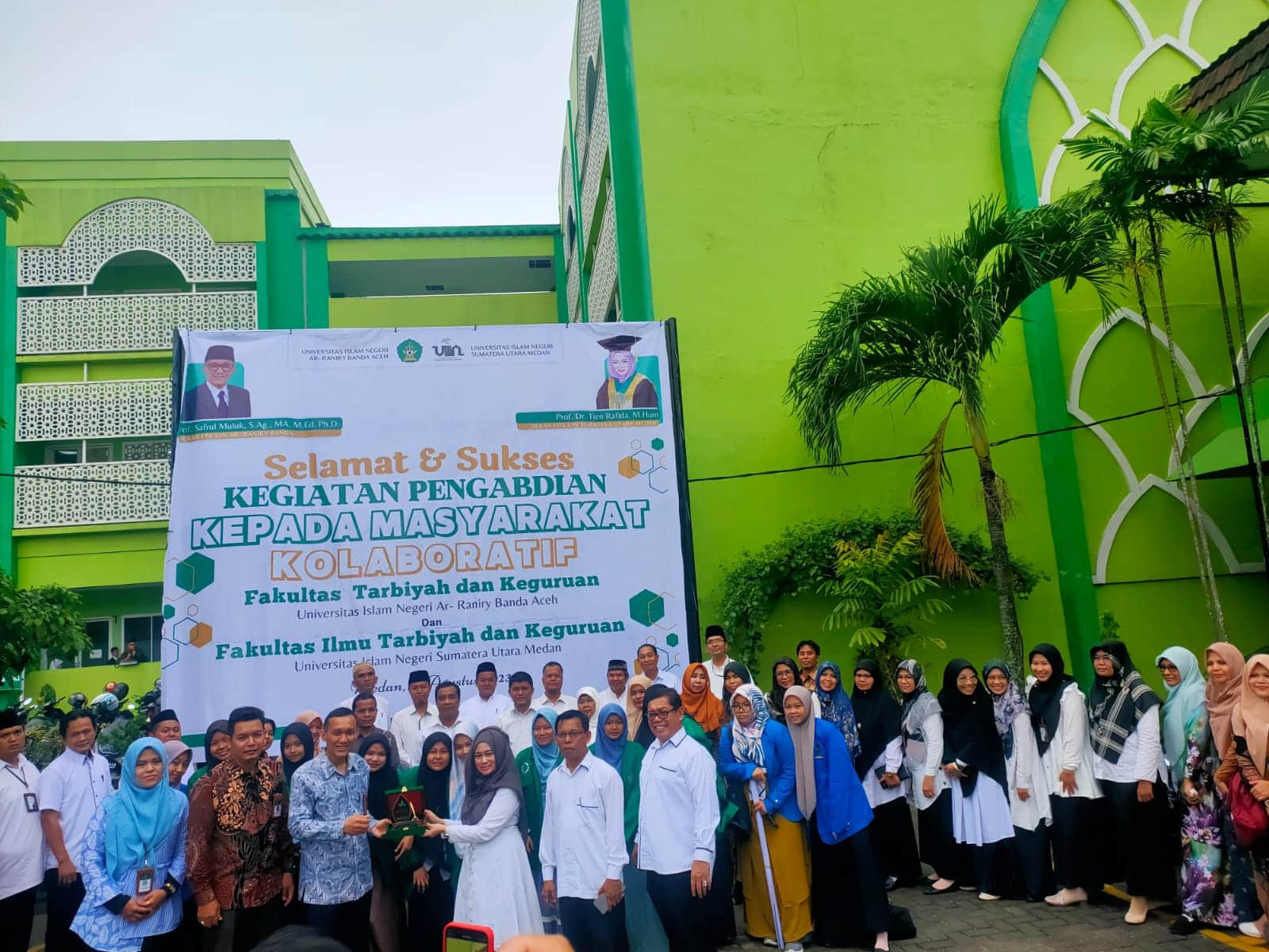 Dalam pengabdiannya. rombongan UIN Ar-Raniry Banda Aceh yang terdiri dari 7 prodi yaitu Prodi PFS, PBI, PKM, PMA, PBL, PGMI dan PIAUD di sambut langsung oleh Dekan FITK UIN Medan Prof. Dr. Tien Rafida, M.Hum. di UIN Medan.