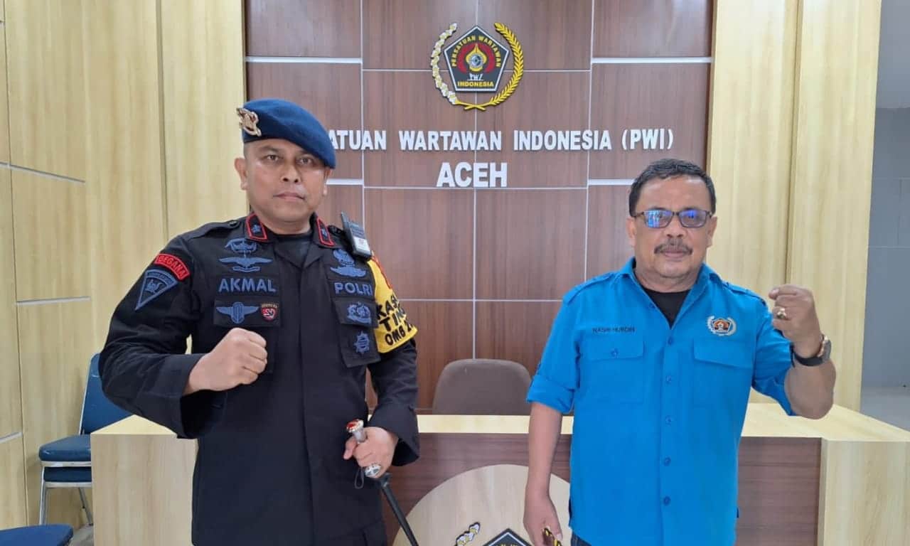 Kehadiran rombongan dari detasemen Gegana Satbrimob Polda Aceh diterima Ketua PWI Aceh Nasir Nurdin bersama Wakil Sekretaris II Abdul Hadi dan sejumlah unsur pengurus lainnya termasuk perwakilan Dewan Kehormatan Provinsi (DKP) PWI Aceh, Rohana Mahmud.