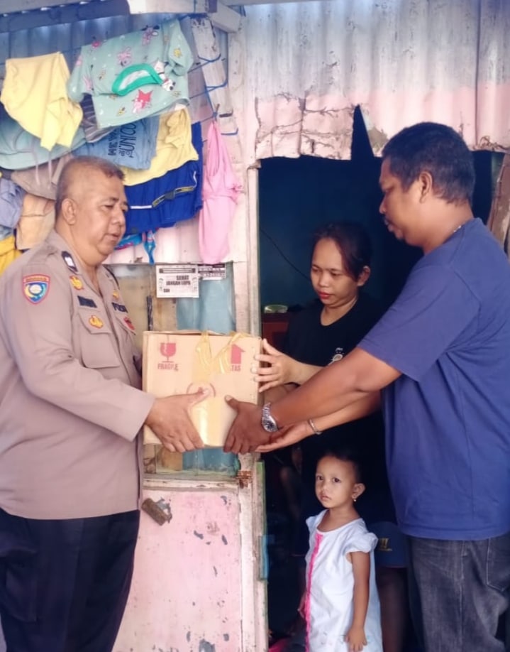 Mengamanahkan bantuan Stunting kepada personil Resmob dan Bhabinkamtibmas Kelurahan Maricayya Selatan Aiptu Indrawan untuk disalurkan kepada yang berhak menerimanya.