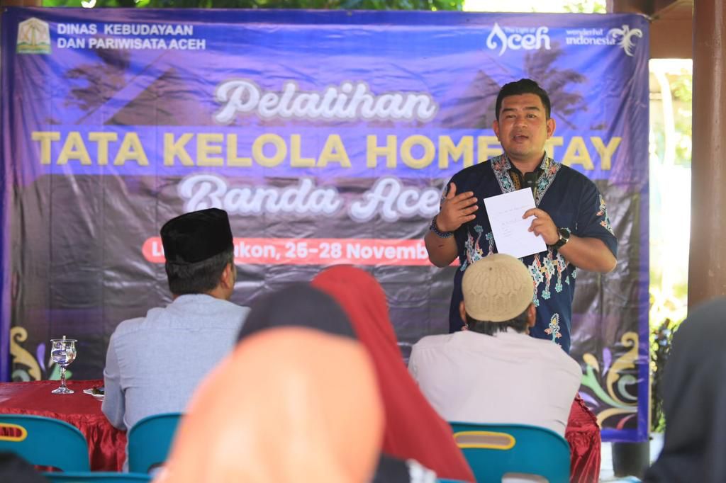 Pernyataan itu disampaikan Almuniza saat memberikan arahan sekaligus membuka kegiatan Pelatihan Tata Kelola Homestay di Desa Lubok Sukon, Kabupaten Aceh Besar pada Sabtu, 26 November 2022.