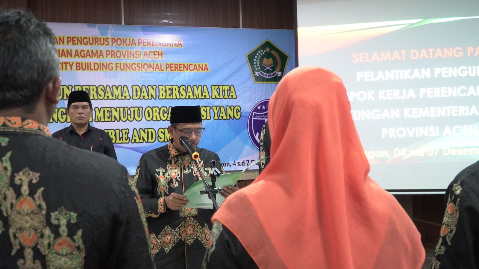 Pengukuhan ini dilakukan pada serangkaian kegiatan Capacity Building Perencana Tahun 2022 yang dibuka Kakanwil Kemenag Aceh, bertema “Bangun bersama dan bersama kita melangkah, menuju organisasi yang Credible and Smart.”