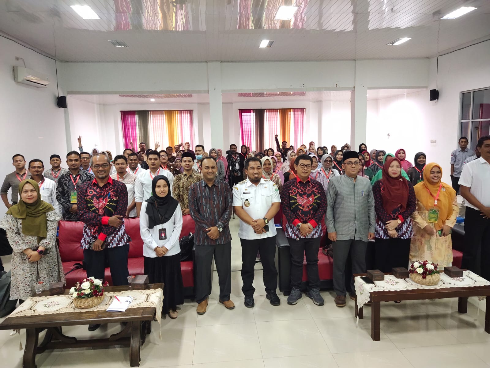 Acara Training of Trainer Menjadi Guru Pelopor Moderasi Beragama dan Lomba Pembuatan Bahan Ajar Video Pendek turut menghadirkan 100 orang peserta dari kalangan, datu damai, praktisi pendidikan guru Paud dan SMA dari Banda Aceh dan Aceh Besar, dan menjadi pembicara Dr. Kamaruzzaman Bustamam Ahmad, M.A. (Dekan Fakultas Syariah dan Hukum UIN Ar- Raniry), Maira Himadhani, S.T., M.Sc. (Subkoordinator Partisipasi Masyarakat BNPT), Dr. Anis Maskur, M.Ag (Kasubdit GTK Kemenag RI), dan Moderator Dr. Sulaiman Tripa, S.H., M.H. (Kabid Agama, Sosial, Ekonomi dan Budaya FKPT Aceh).[MD]