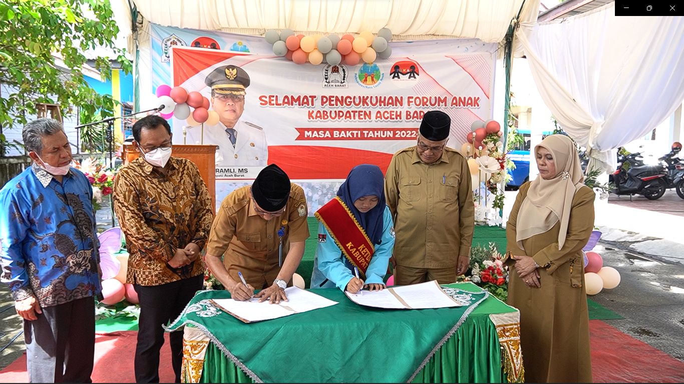Pada kesempatan tersebut, Forum Anak Kabupaten Aceh Barat juga menandatangani MoU Permata Bunda dengan Dinas Kependudukan dan Catatan Sipil (Disdukcapil) Kabupaten Aceh Barat yang di saksikan langsung oleh Asisten Administrasi Umum Setdakab Aceh Barat, Kepala Dinas DP3AKB Aceh Barat, serta Kepala Unicef Perwakilan Aceh.(Muhibbul).