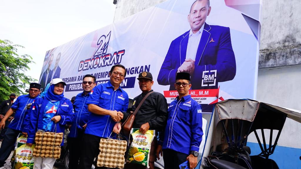 Ketua DPD Demokrat Aceh, Muslim, menyampaikan bahwa ulang tahun Demokrat yang ke-21 ini menjadi salah satu momen bagi Partai Demokrat untuk mendekatkan diri dan hadir menolong rakyat yang sedang mengalami kesulitan saat ini.