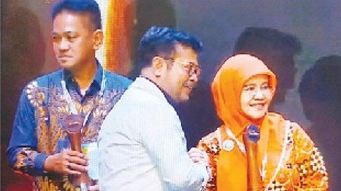 Kadistanbun Aceh, Ir Cut Huzaimah MP, mewakili Pj Gubernur, Aceh Achmad Marzuki, menerima penghargaan Inovasi Program PSR dari Menteri Pertanian, Syahrul Yasin Limpo, untuk Pj Gubernur Aceh, pada acara Rakor Sawit Nasional di Jakarta, Senin (27/2).
