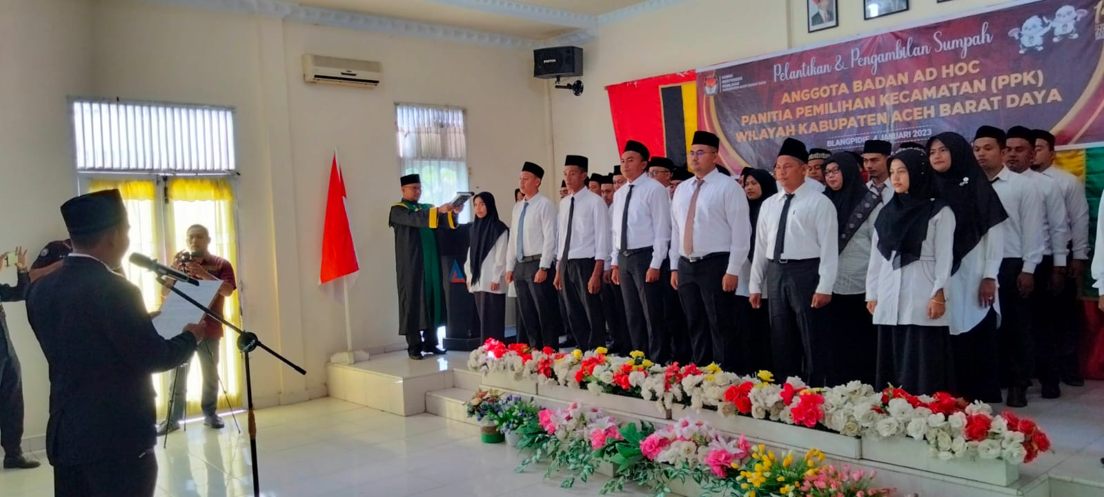 Aceh Barat Daya, SIPNEWS.ID – Sebanyak 45 orang anggota Badan Ad Hoc Panitia Pemilihan Kecamatan (PPK) di Kabupaten Aceh Barat Daya (Abdya), Provinsi Aceh diambil sumpah dan pelantikan.
