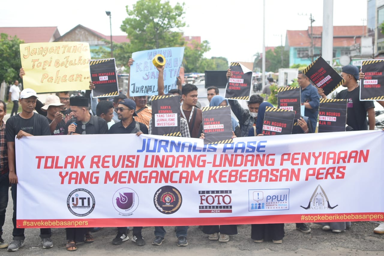 Koordinator Aksi, Muhammad Jafar, mengatakan jurnalis Lhokseumawe dan Aceh Utara umumnya Aceh menolak tegas pasal-pasal bermasalah pada revisi Undang-Undang Penyiaran sedang dibahas di Dewan Perwakilan Rakyat (DPR) Republik Indonesia.