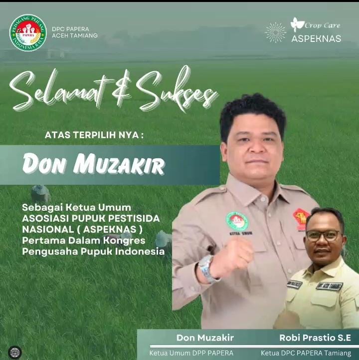 Ketua DPC PAPERA Aceh Tamiang, Robi Prastio, SE, menilai terpilihnya Don Muzakir merupakan langkah positif bagi kemajuan sektor pupuk dan pestisida di Indonesia, khususnya dalam memperjuangkan kepentingan para pelaku usaha di bidang tersebut.
