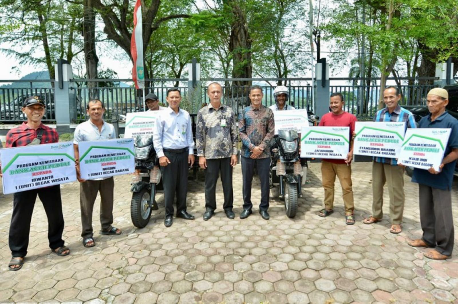 Wali Kota Sabang Bersama Pimpinan Bank Aceh Syariah Cabang Sabang Serahkan 7 Unit Becak Mesin Kepada Masyarakat